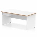 Oslo 1600 x 800mm Scalloped Edge Straight Office Desk White Top Natural Wood Edge White Panel End Leg