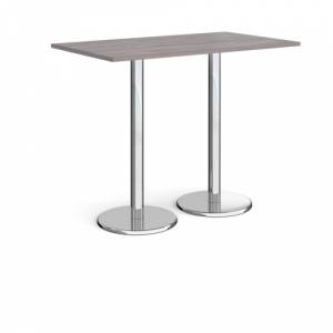 Pisa rectangular poseur table with round chrome bases 1600mm x 800mm - grey oak