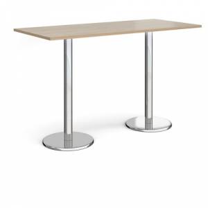 Pisa rectangular poseur table with round chrome bases 1600mm x 800mm - Kendal oak