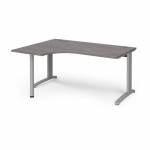TR10 left hand ergonomic desk 1600mm - silver frame, grey oak top