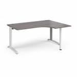 TR10 left hand ergonomic desk 1600mm - white frame, grey oak top